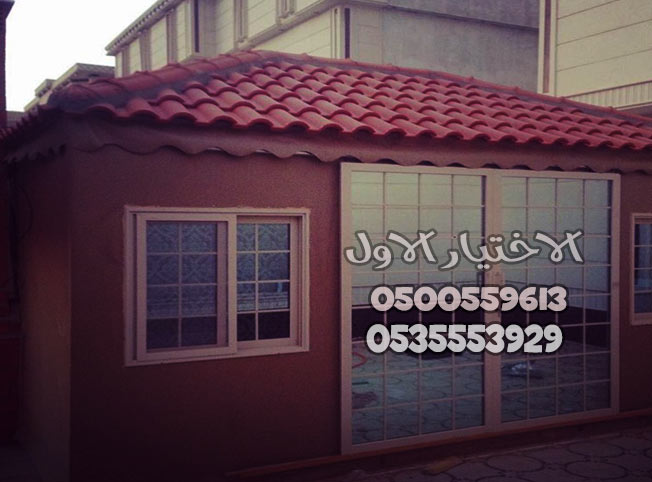 لدينا تصاميم بيوت شعر حديثة وفخمة تشمل تركيب المشب والكهرباء وديكور القرميد حديد أم قرميد فخار أم معدني.